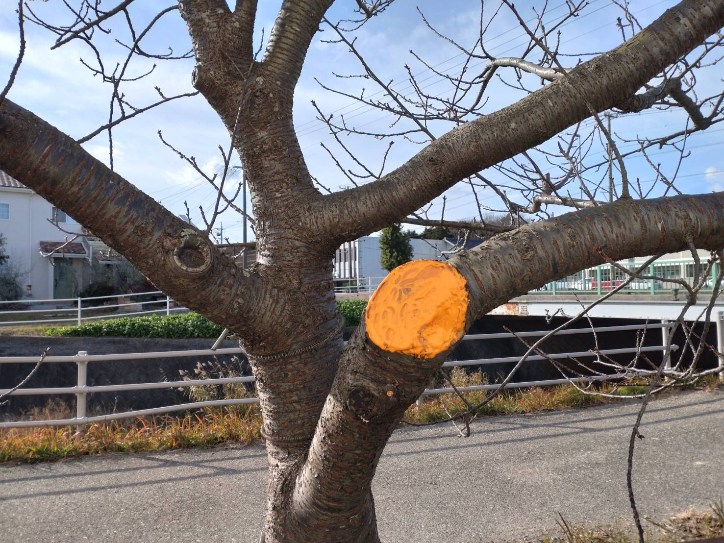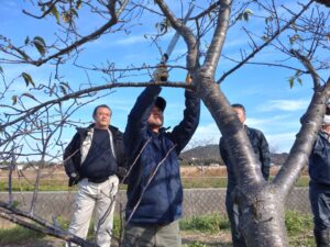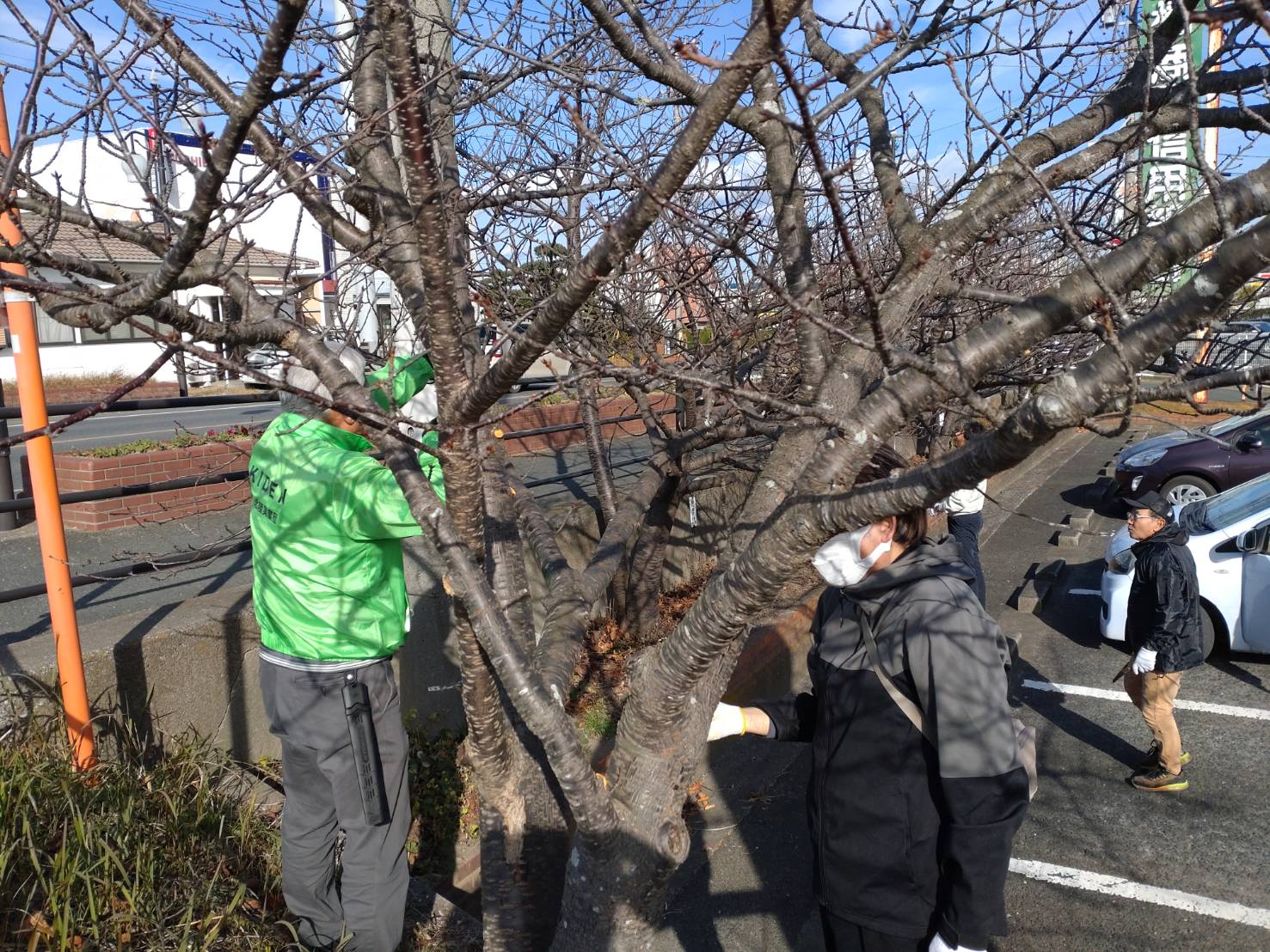 いらない枝を整理し、来年は力強い河津桜が咲くように皆んなで頑張りました💪