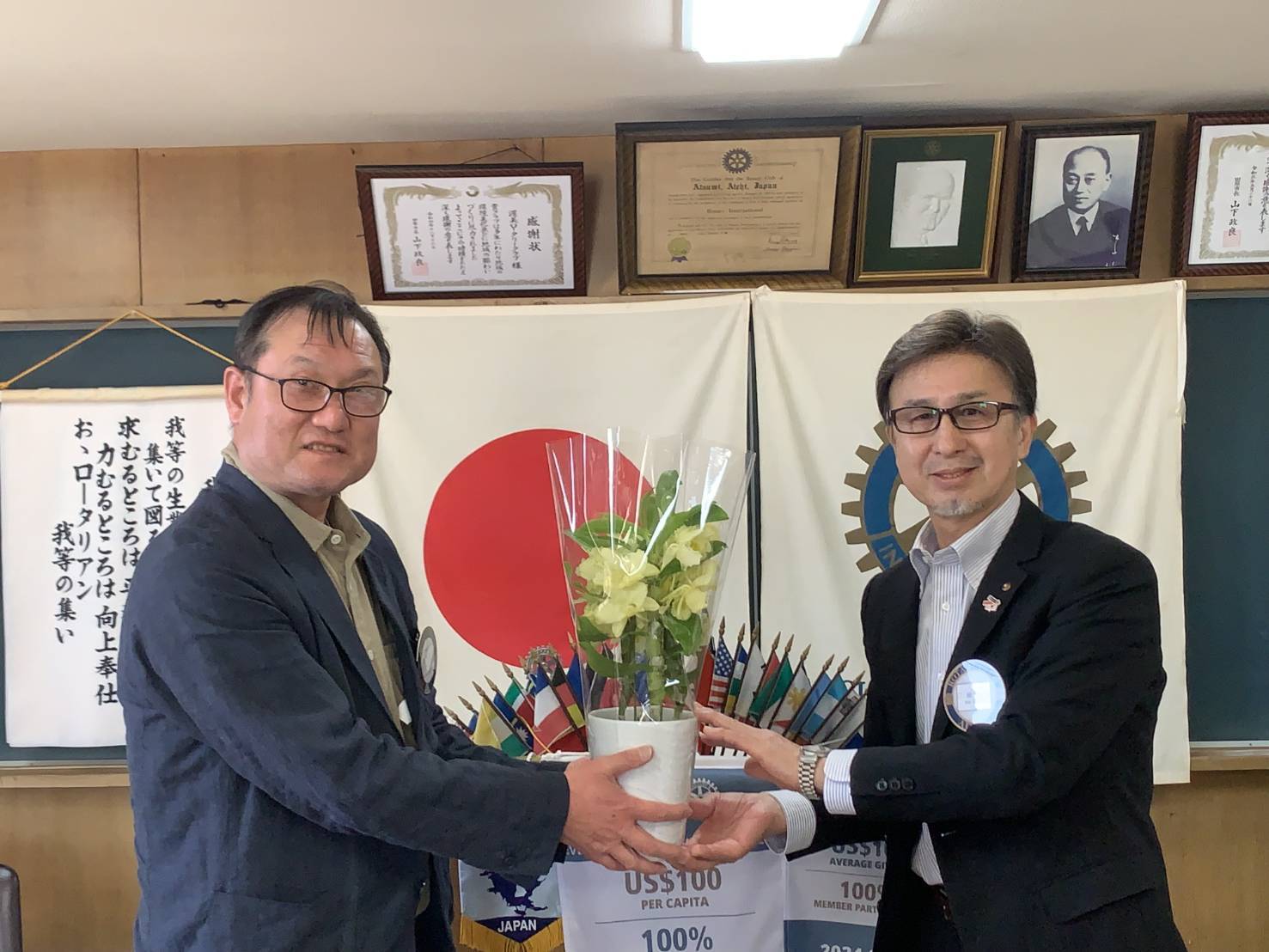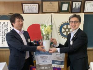 2025-26年度 第2705回 2月4日(水) 2026/02/04[例会報告] ゲストスピーチ 本日は第一例会!恒例の三浦会長からのプレゼント。味噌煮込みうどんと塩焼きそばを頂きました。 今月誕生日の会員にお花のプレゼントがありました🌷
