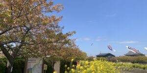 田原市福江町地内 免々田川 菜の花・桜まつり会場(桜・菜の花の並木道)