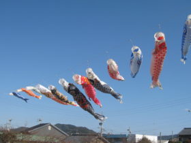 桜まつりが近づいてきましたので、鯉のぼりを揚げました。