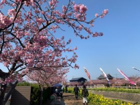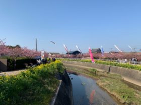 2021年2月20日 開花状況 2021/02/20 今日はお天気もよく暖かな絶好のお散歩日和でした٩(ˊᗜˋ*)و 菜の花は先日の風でちょっと倒れてしまいましたが桜は良く咲いています 来週あたり満開かな(o^∀^o)