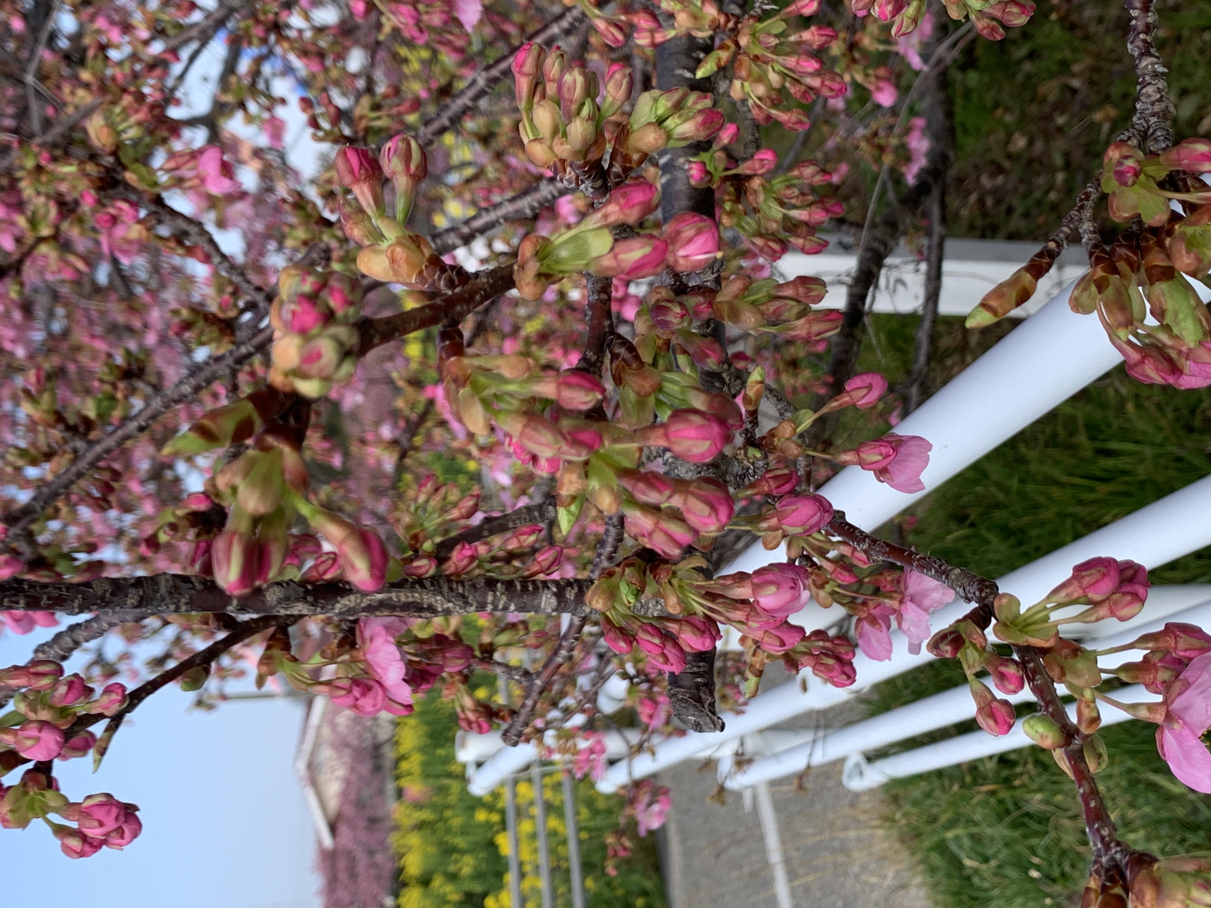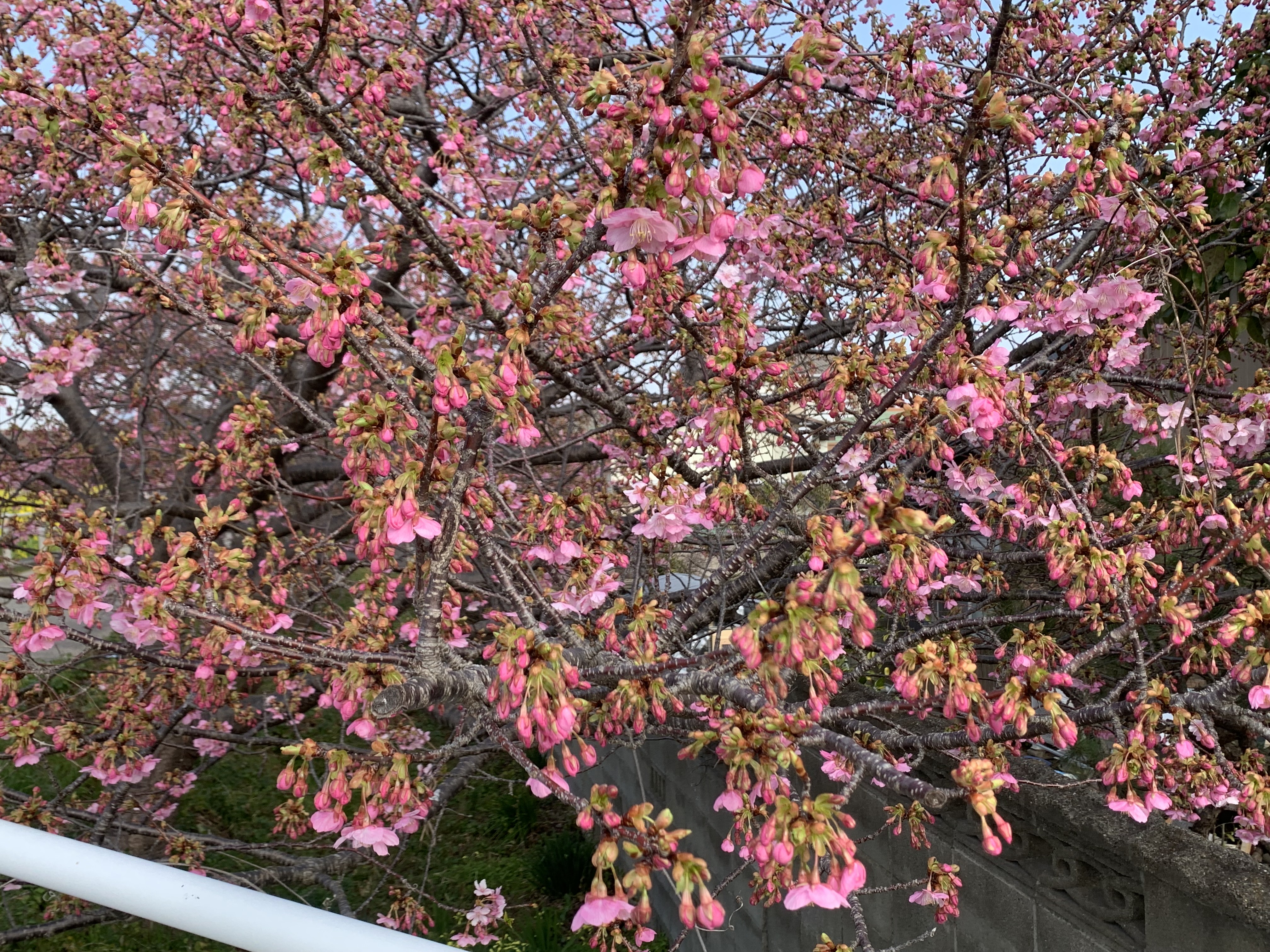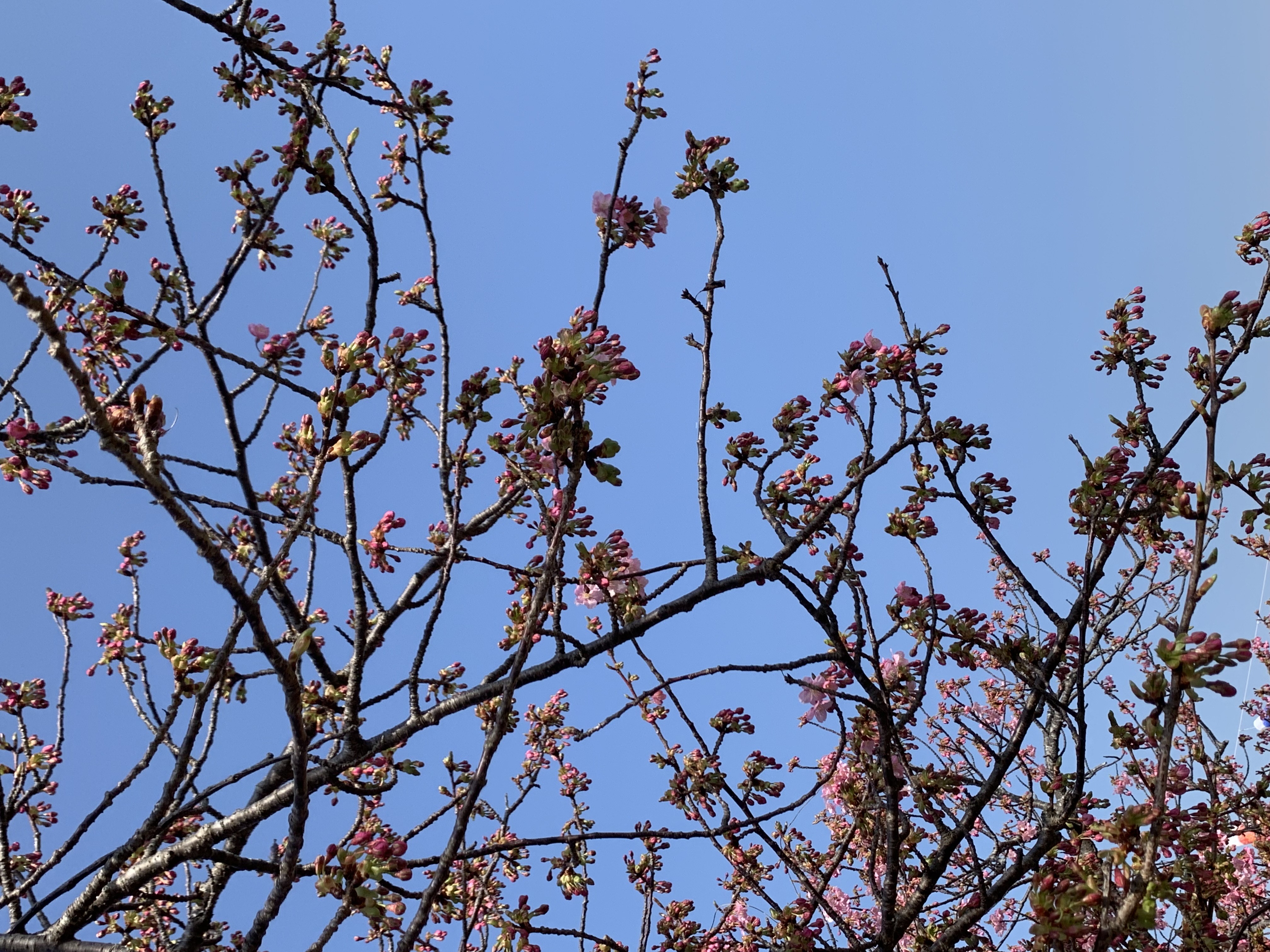 2026年2月23日の🌸開花状況 2026/02/23 今日も暖かくいいお天気☀️.° 🌸お散歩日和です 🌸も暖かいせいか5分咲き以上になって来ました(^-^) でも、なかにはまだまだ蕾の🌳もあります 🎏も元気に泳いでいます