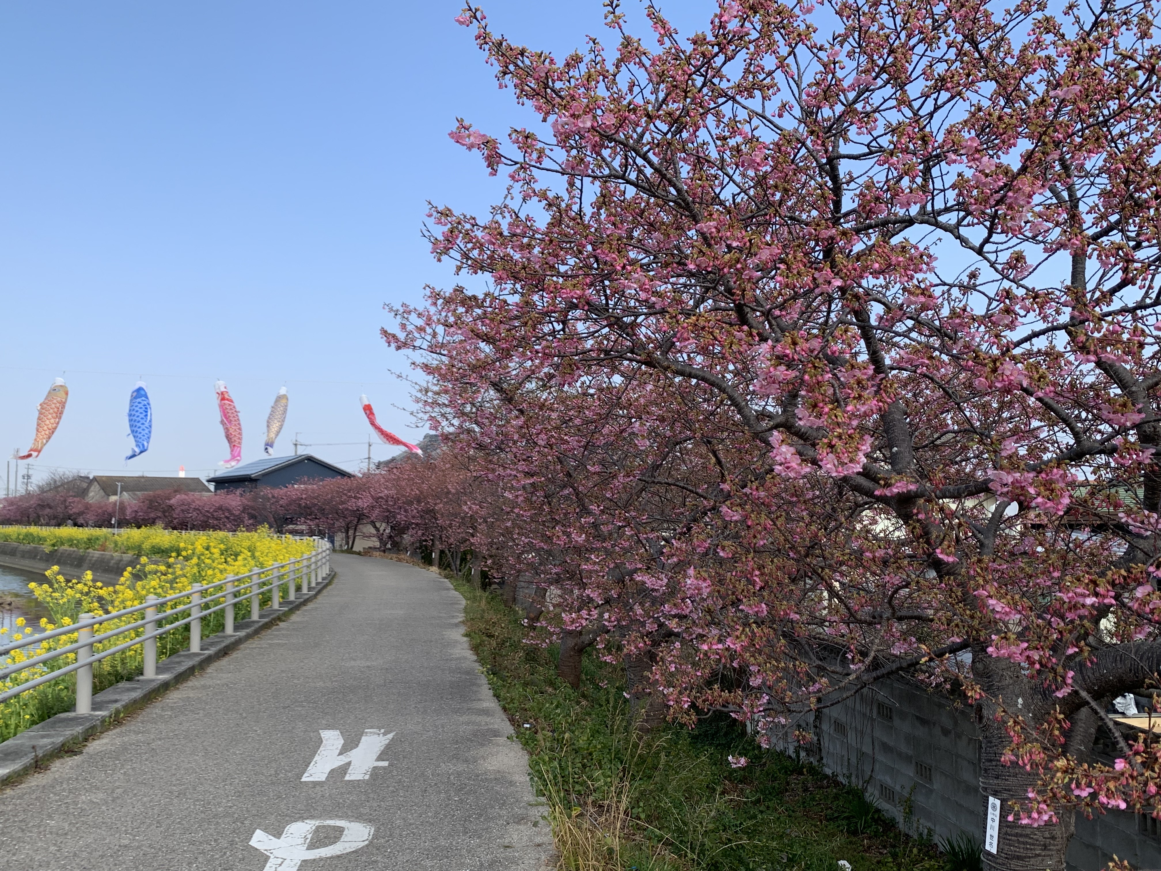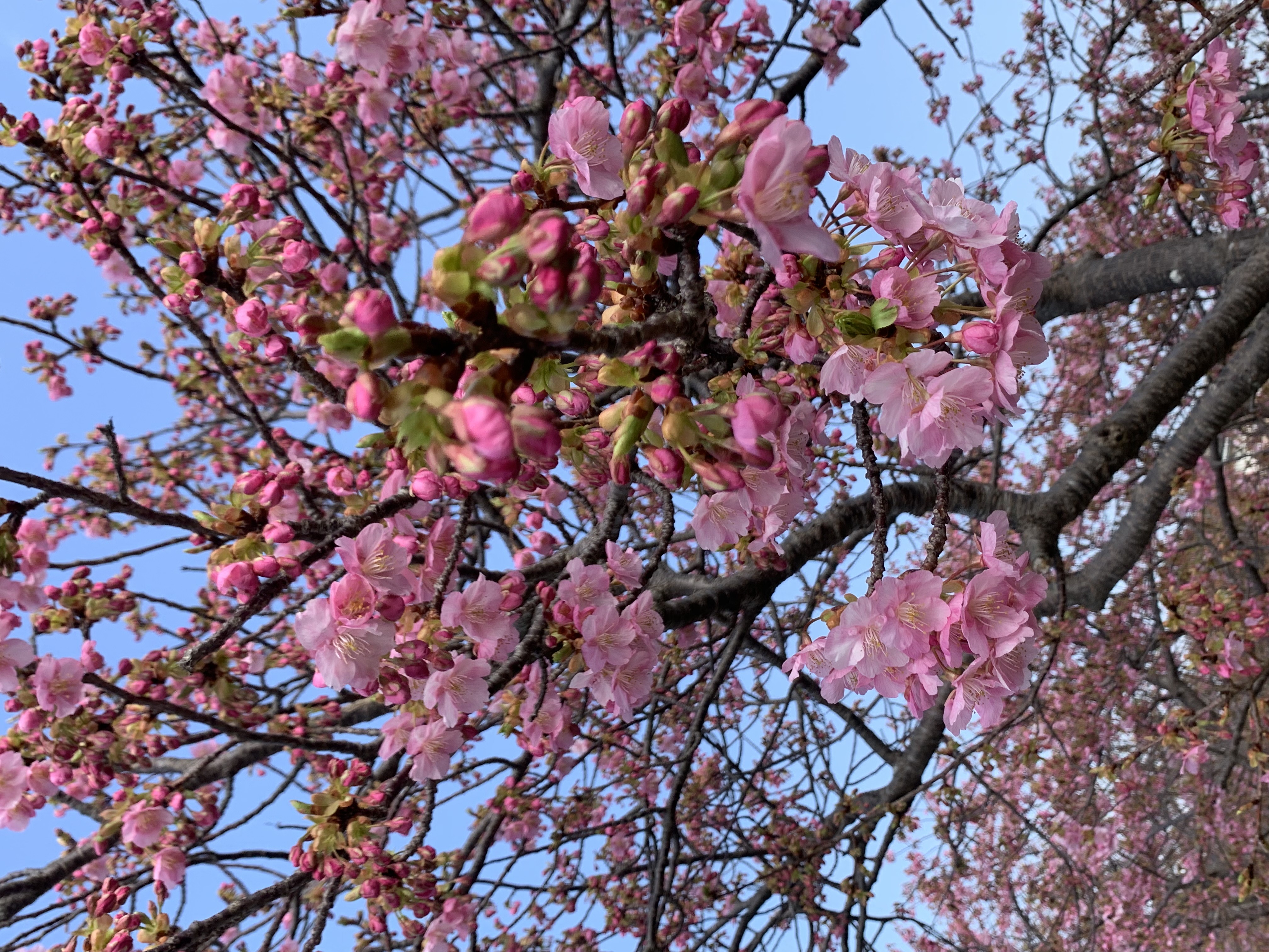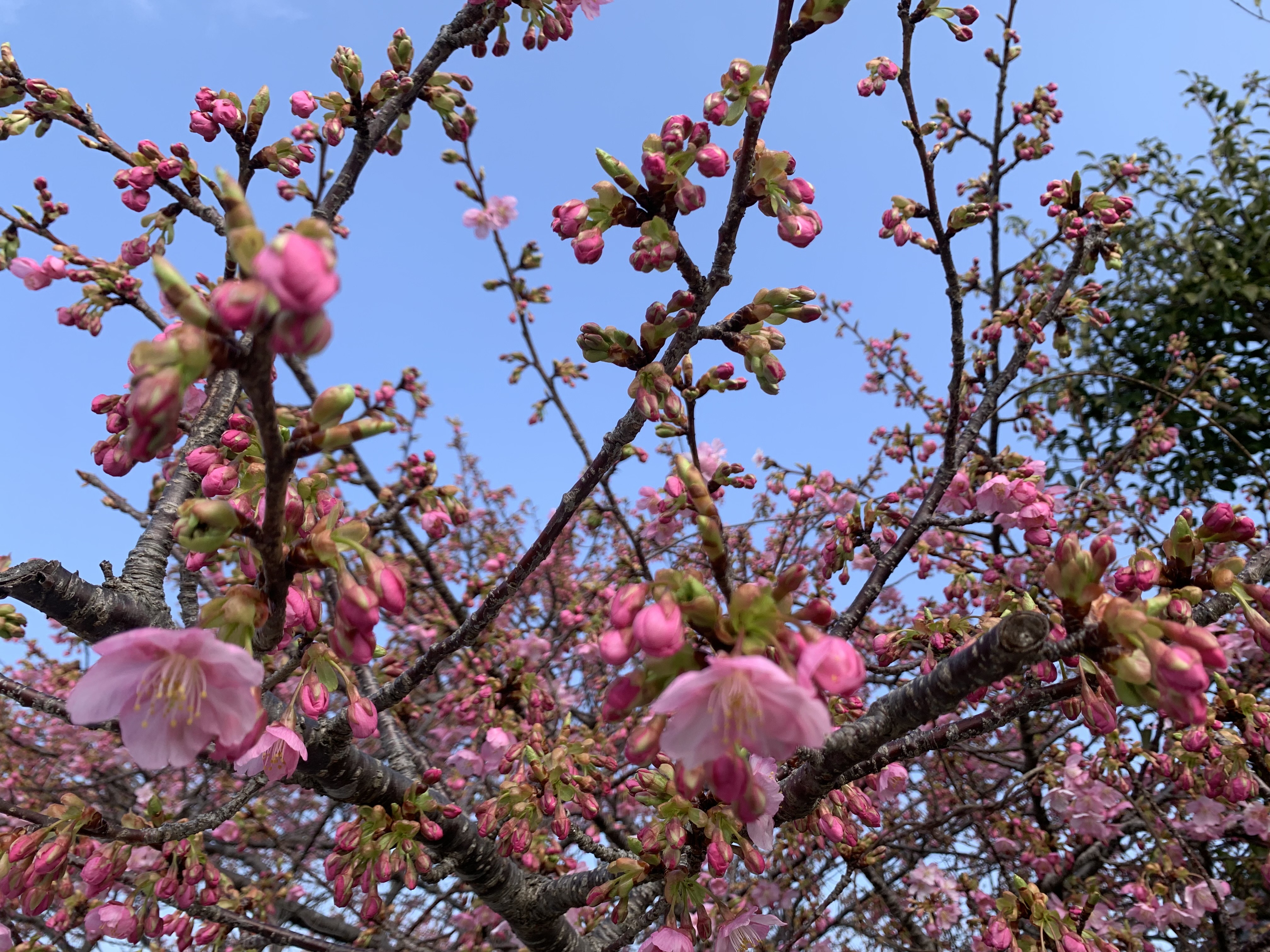 2026年2月23日の🌸開花状況 2026/02/23 今日も暖かくいいお天気☀️.° 🌸お散歩日和です 🌸も暖かいせいか5分咲き以上になって来ました(^-^) でも、なかにはまだまだ蕾の🌳もあります 🎏も元気に泳いでいます