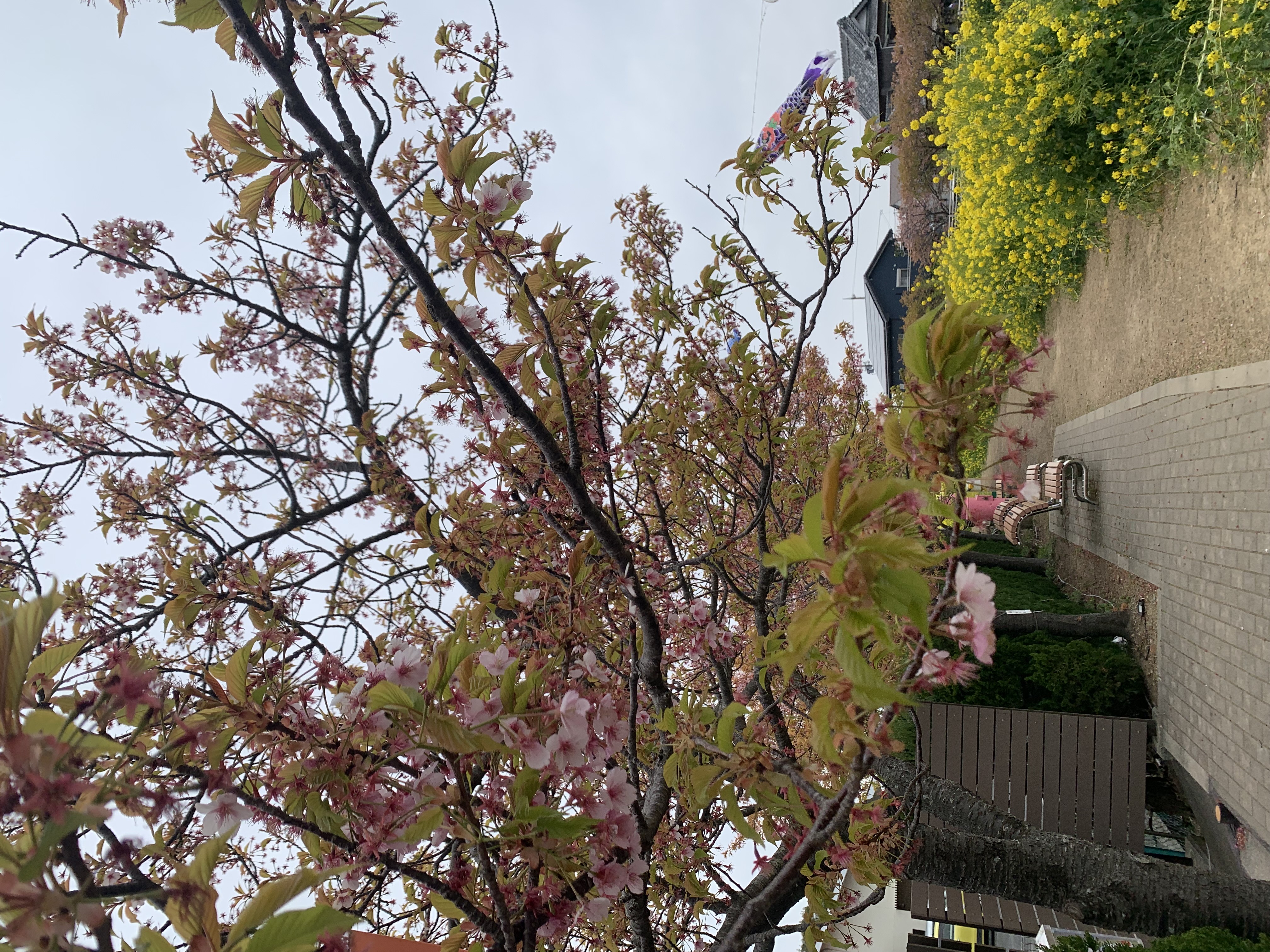 いいお天気ですね💕 現在の🌸*・はこんな感じです 葉桜になっていますが 🌸*・頑張っていますよ 🎏鯉のぼりは元気に泳いでいます(*^^*)