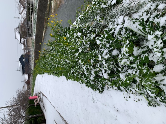 朝から大変でしたね 今日の免々田川風景&🌸は雪まみれです