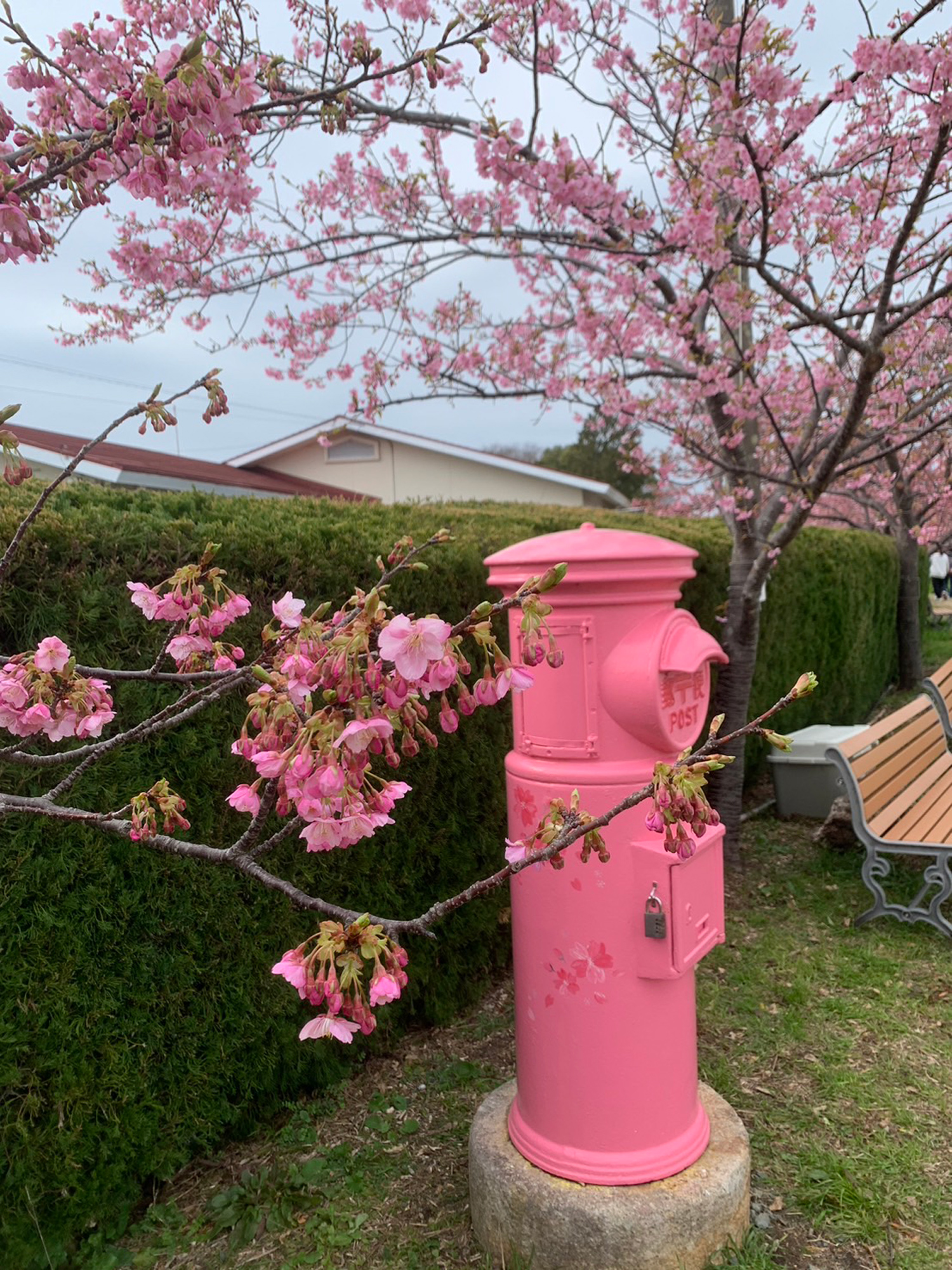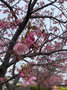 今日はどんより☁️曇り空☁️ 🌸が大分開いてきましたがまだ3分くらいかな やはり来週中くらいが見頃かな