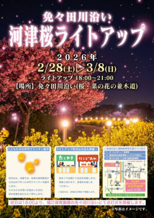 今年は、免々田川沿いに咲く河津桜を、期間限定でライトアップします。